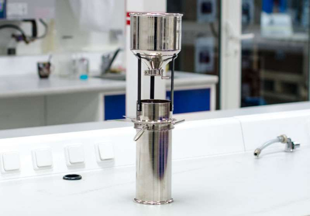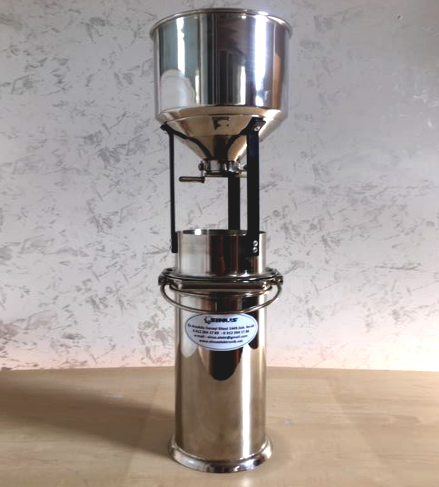 Ölçüm kabı, dolum silosu, bıçak ve dijital terazi olmak üzere 4 kısımdan oluşmaktadır. TSE ye uygun sert pirinç malzemeden ve krom kaplı bakır, paslanmaz çelik ve alüminyumdan üretilmiştir. Portatiftir, rahatlıkla taşınabilmektedir. Cihazın bıçağı paslanmaz çelikten üretilmektedir. Dijital terazili olduğu için, uzun ayarlama ve tartımlar gerektirmemektedir.